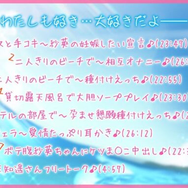 ASMR【キミのこと、大好きだから…も〜っといっぱいいっぱいシテあげる♪ 南の島でじゅっぽり妊活☆【KU100バイノーラル】】d_254176 2024.11.20ASMRおっぱいアナルキミのこと、大好きだからバイノーラルパイズリパースペクティブ少女幻奏フェララブラブ・あまあま中出し妊娠・孕ませ成人向け水着男性向け