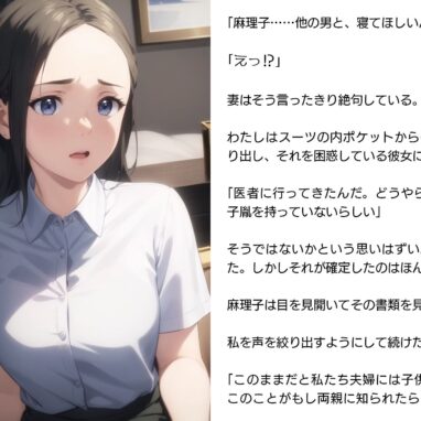 ぶっかけ【寝取らせ妻・麻理子〜「妊活」のため妻を他人の男に抱かせてみた(CGノベル/NTR)】d_400167 2024.10.29ぶっかけフェラ中出し人妻・主婦寝取らせ寝取られ・NTR寝取り・寝取られ・NTR成人向け浮気獨去書房NTR男性向け盗撮・のぞき裸エプロン