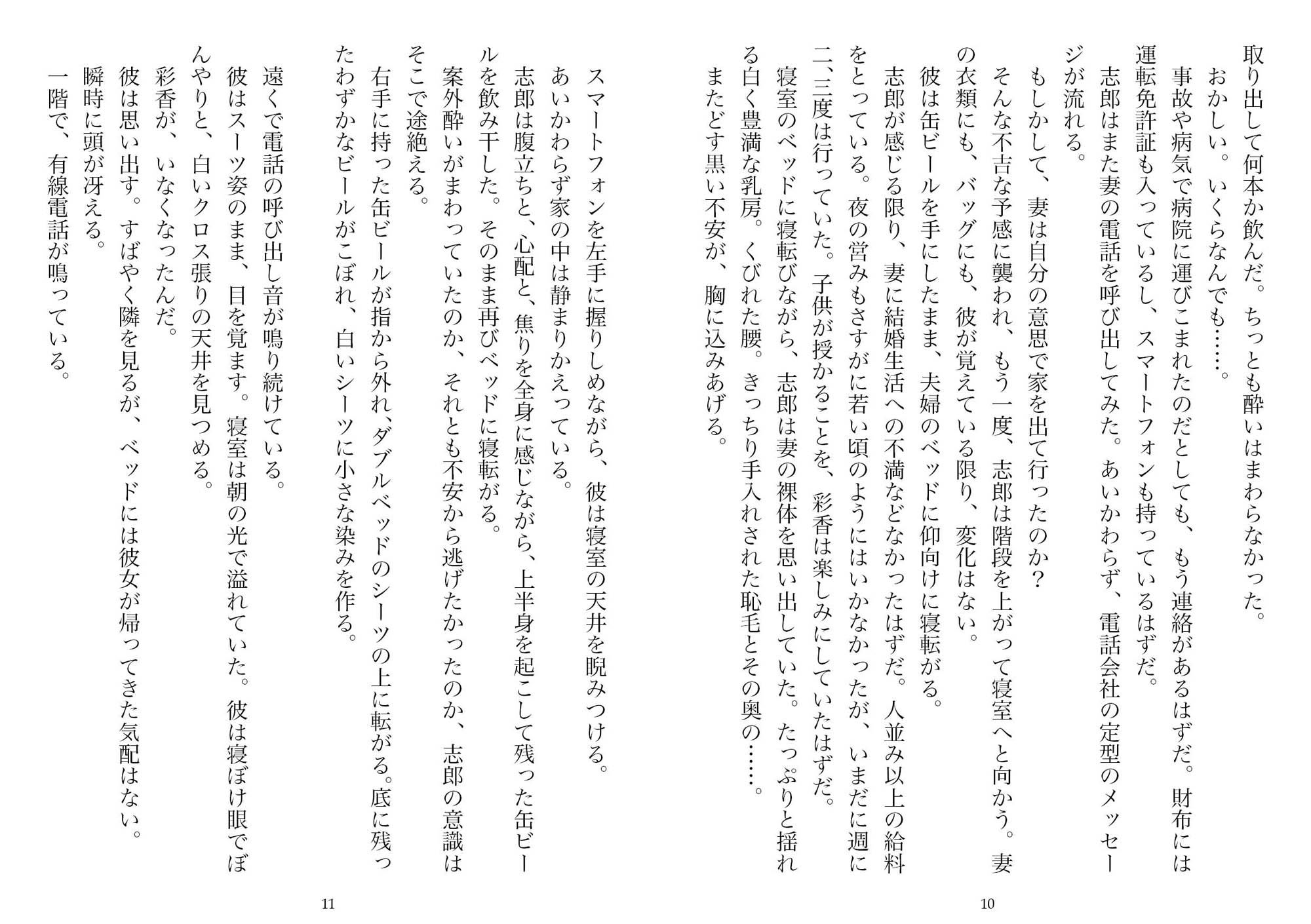 官能小説です。寝取られ(ネトラレ)属性専門レーベル、NTR文庫第7弾。あらすじ:野田志郎が帰宅してみると、妻がいなくなっていた。翌朝、妻が陵●される様子を収めたDVDが届く。誘拐犯たちは現金を要求してきた。DVDが届くたび、男たちの行為はエスカレートし、妻が快楽に支配されていく。切羽詰まった志郎は、妻を救うため、行動を起こす……。ヒロイン:野田彩香…