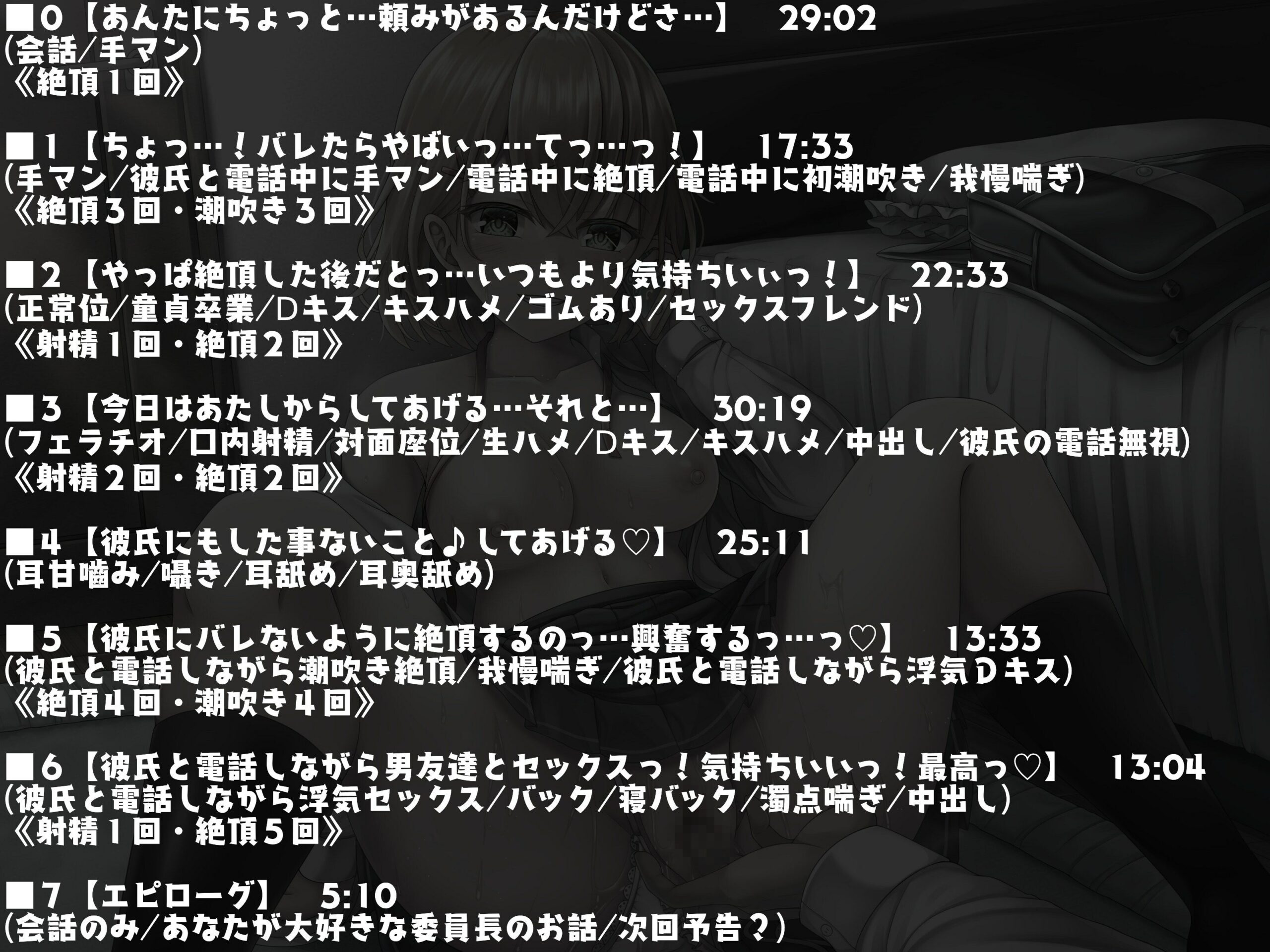 【トラック内容】 ■0【あんたにちょっと…頼みがあるんだけどさ…】 29:13 (会話/手マン) 《絶頂1回》昔から仲の良い女友達の莉奈とあなたの家で何気ない会話。 ただ今日は今までとは違う、ちょっとエッチな話…。 ある一点、彼氏に不満があると言う莉奈。 その欲求不満の解消に男友達のあなたを選び、お願いをされる事に♪■1【ちょっ…!バレたらや…