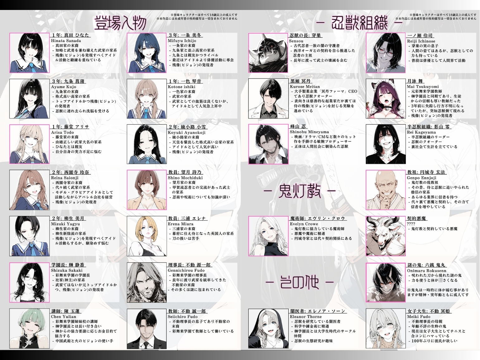 本編230ページ+作品紹介等9ページ※登場キャラクターはすべて18歳以上の成人であり、本作品には未成年者の性的描写は一切含まれておりません ※登場人物の鬼丸は一時的に体が縮む事がありますが、精神・実年齢ともに成人です【エピローグ】 その昔、侍と忍者の間では血塗れの争いが繰り広げられていた。 一時、侍たちは日本の鬼と手を組み、その強大な力で忍者たちを…